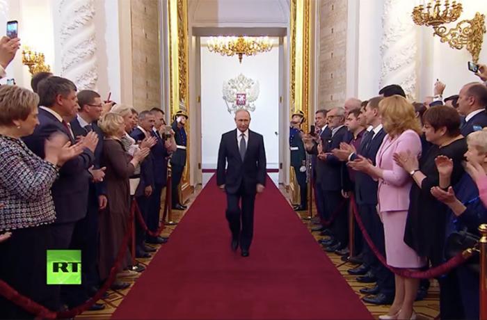 5月7日弗拉基米尔普京(Vladimir Putin) 在克里姆林宫安德烈耶夫斯基大厅的镀金墙和水晶吊灯的背景下,按着俄罗斯宪法发誓,宣誓就任俄罗斯总统,在国歌后,他发表了一个简短的演讲,他承诺要「繁衍俄罗斯的力量和繁荣」。普京已经执政了18年,不管是总统还是总理,他的对手都称他为「沙皇普京」。两天前,在莫斯科和其他俄罗斯城市举行了抗议「沙皇」的抗议活动。在与警方发生冲突后,在19个城市共有数千人被捕,特别是指摘俄罗斯政府腐败和民主不足的年轻人,一些人担心可能出现的示威行为与总统宣誓就职不谋而合,但迄今为止没有发生任何事情。(亚洲新闻)