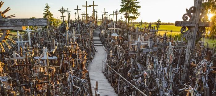 在立陶宛的希奥利艾(Šiauliai)有一座十分独特的小山,它是当地的一个著名景点,也是一个感染人心的朝圣地。这山丘名为“十字架山”( Kryžių kalnas),屹立在距离首都维尔纽斯(Vilnius)220公里的一片辽阔田野中,面积大概只有一个足球场大小。地方虽小,但那里却插着大约20万支大小、形貌不一的十字架,而每个十架的背后,都隐藏着许多破碎、心酸、动人的故事。