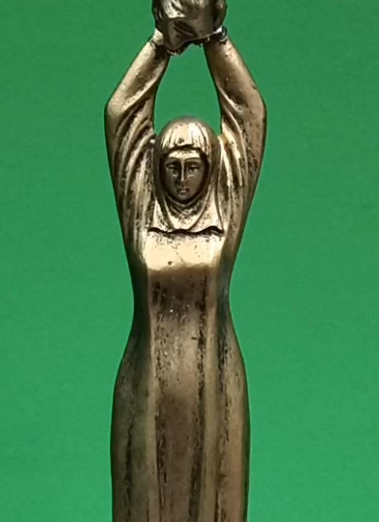 圣母: 在这里提到圣母的姿势,我们不得不提到教会里的一篇经文,称为“母后万福诵”(“又圣母经”),里面有一句:“厄娃子孙,在此尘世,向你哀呼。在这涕泣之谷,向你叹息哭求。我们的主保,求你回顾,怜视我们。”