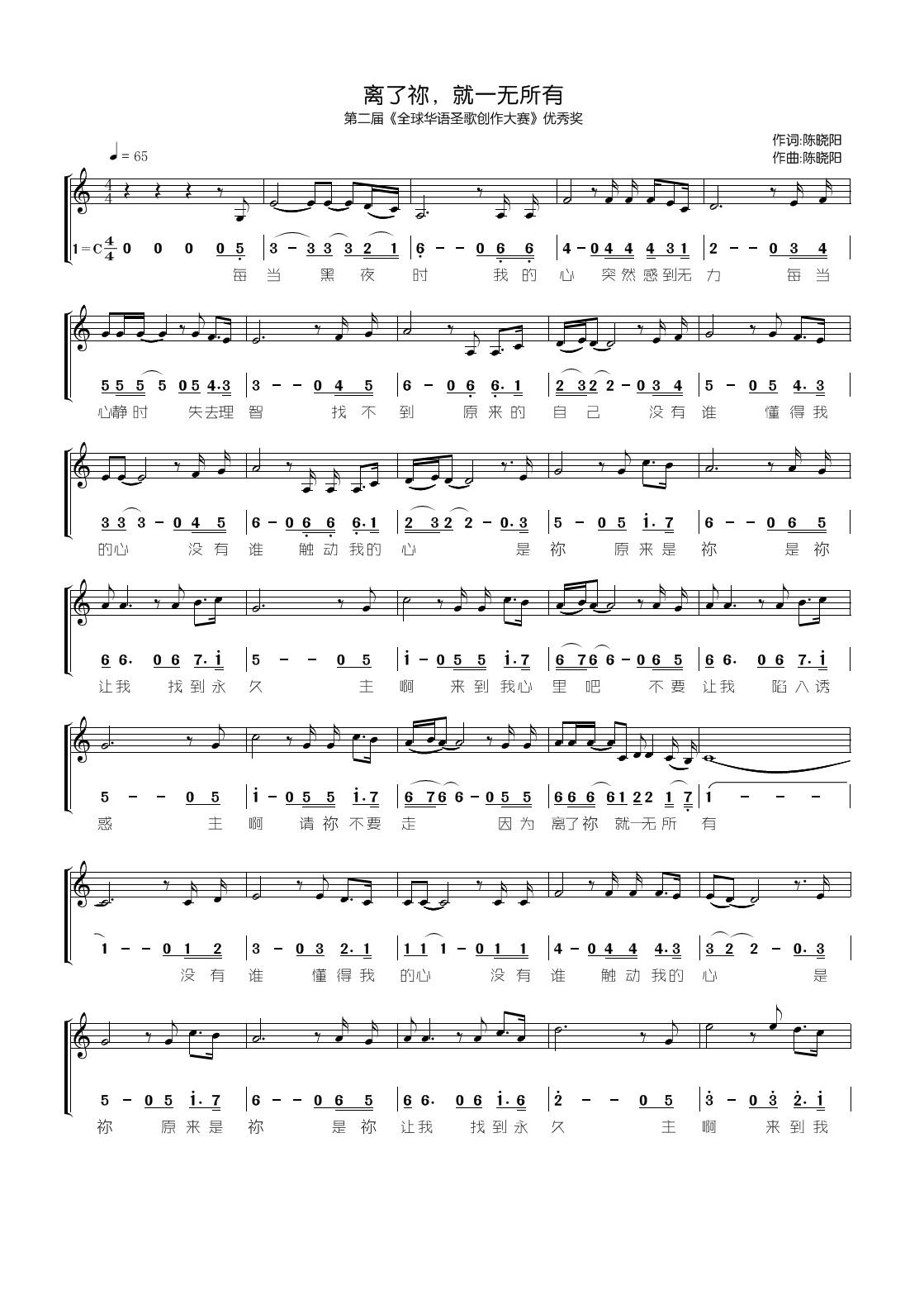 【华语圣歌创作集】62|《离了祢,就一无所有》——第二届“真理杯”全球华语圣歌创作大赛优秀奖作品