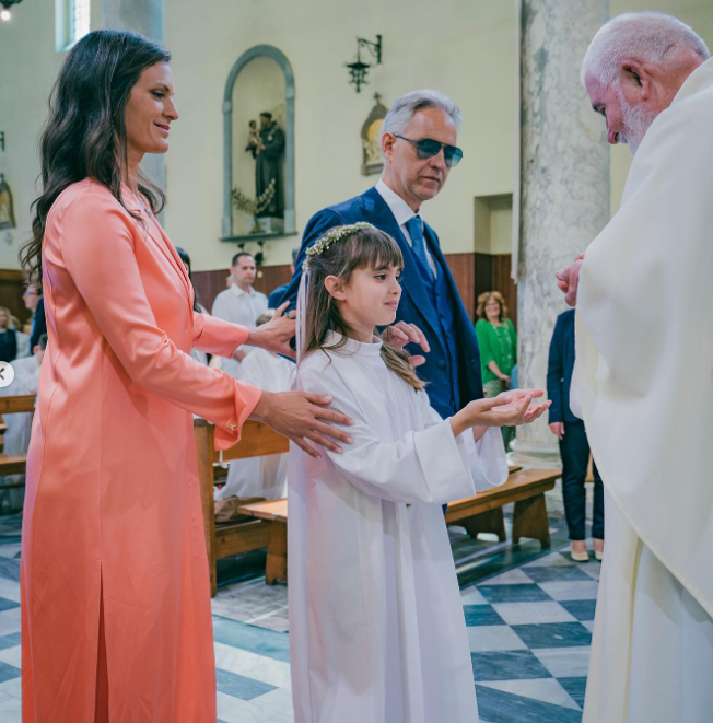 据真理网(Aleteia)报道,5月16日,波切利和他的妻子维罗妮卡(Veronica)在社交媒体上与粉丝们分享了他们的小女儿弗吉尼亚-波切利初领圣体的神圣时刻。这位男高音发布了一系列家庭照片,包括一些与主礼神父的合影。