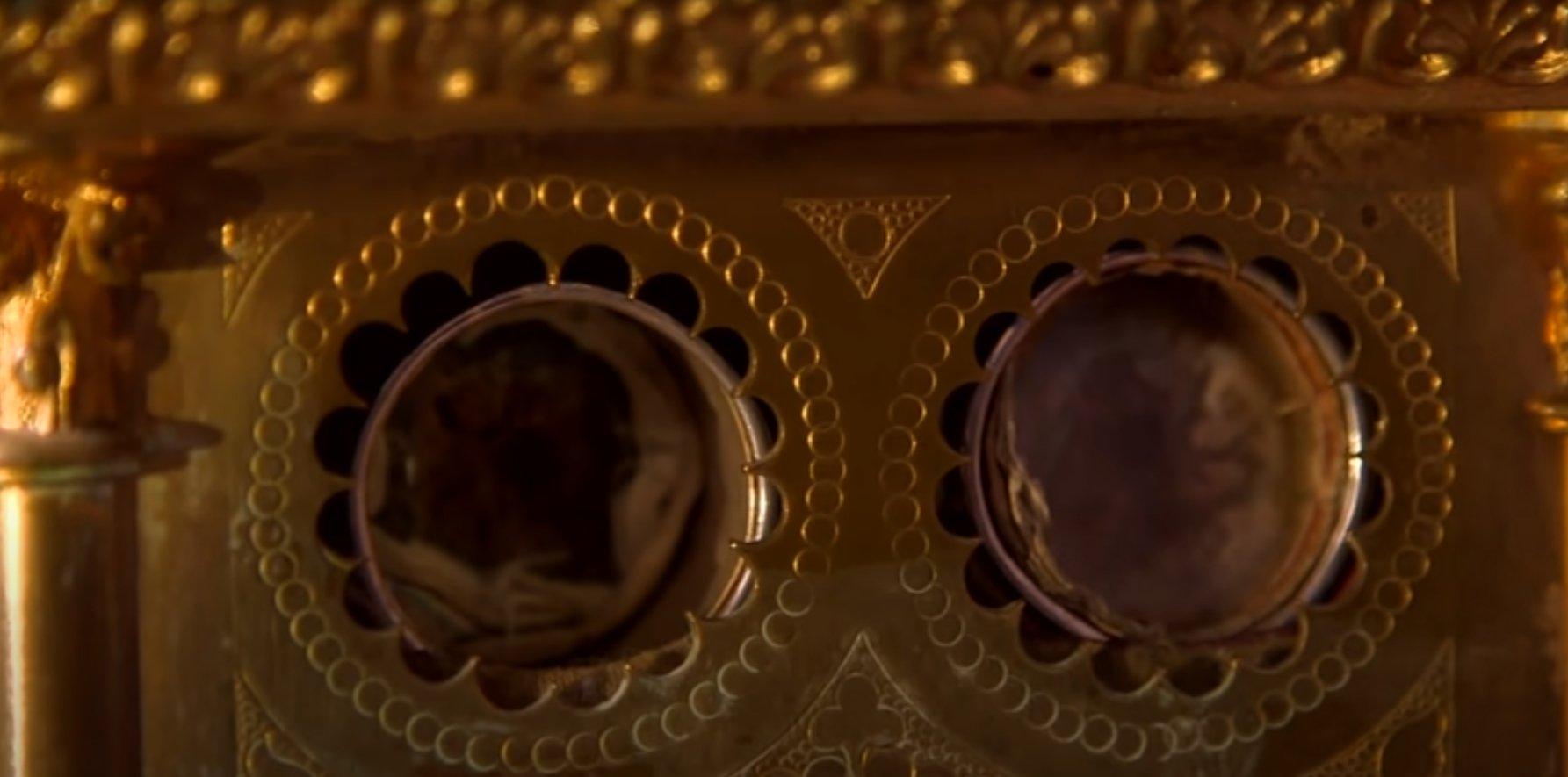 当他打开盒子时,他知道他的祈祷没有落空:圣物完好无损。这座富丽堂皇的容器,高约30公分,上面镶有宝石,并刻有十字架上的基督形象以及其他圣人的画像。