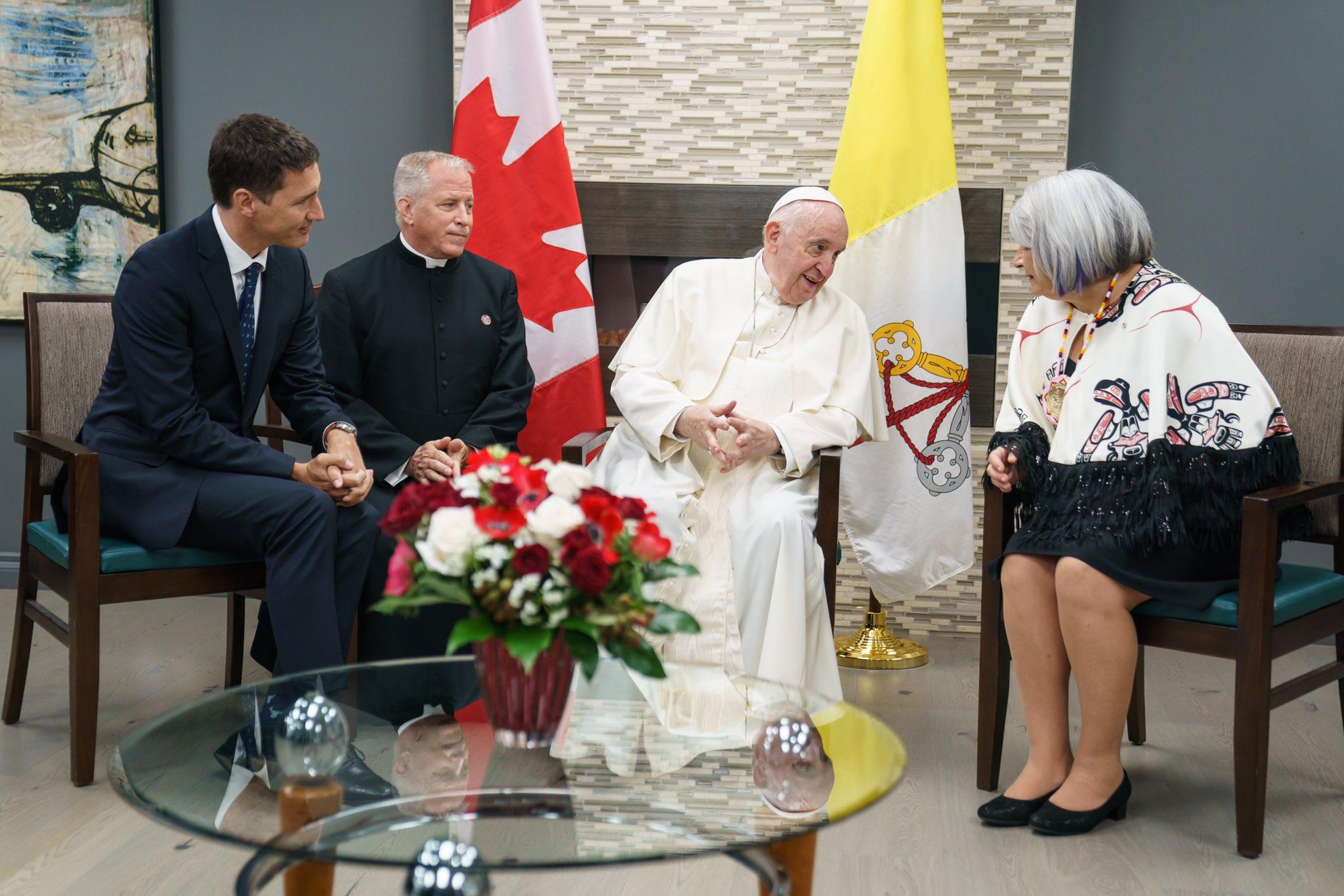 教宗于(埃德蒙顿)当地时间24日上午11:09(北京时间25日凌晨1:09)抵达加拿大埃德蒙顿国际机场,并在那里接受了加拿大政府当局及教会领袖的欢迎。加拿大总督玛丽·西蒙、总理特鲁多、亚省省督萨尔玛·拉哈尼,以及原住民各民族领袖出席了欢迎仪式。