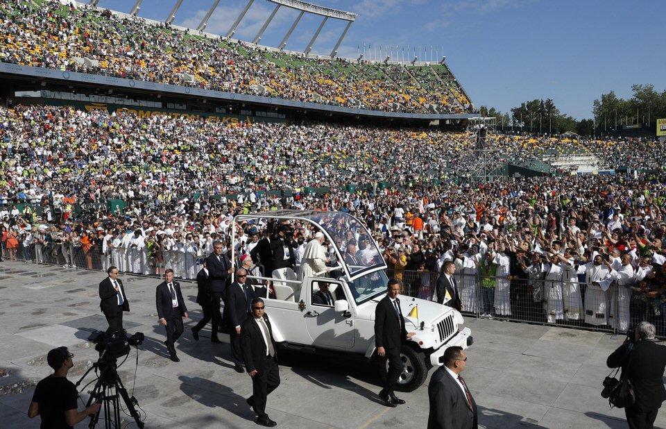 7月26日,教宗方济各加拿大牧灵访问的第三天。当天教宗主要进行了两项活动:上午在英联邦体育场参与弥撒并讲道,下午在圣亚纳湖参加朝圣并主持一场圣道礼仪。