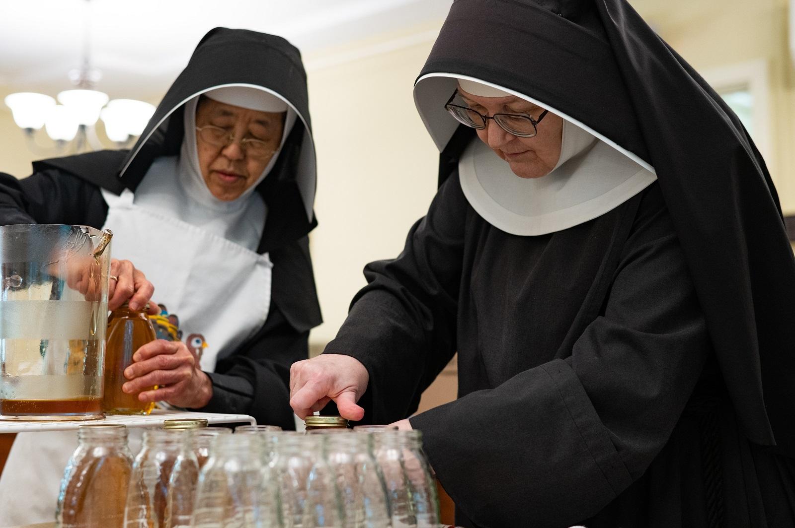 林赛修女表示,这里生产的蜂蜜总是很甜,但每年都有不同的特点,这取决于蜜蜂吃了什么。今年的这批蜂蜜是深金色,而且比往年要更浓一些。她总结道,养蜂、收集和装瓶都是很繁琐的过程,需要时间和精力。但正是在这种简单的需要耐心的工作中,修女们开始碰触到天主。
