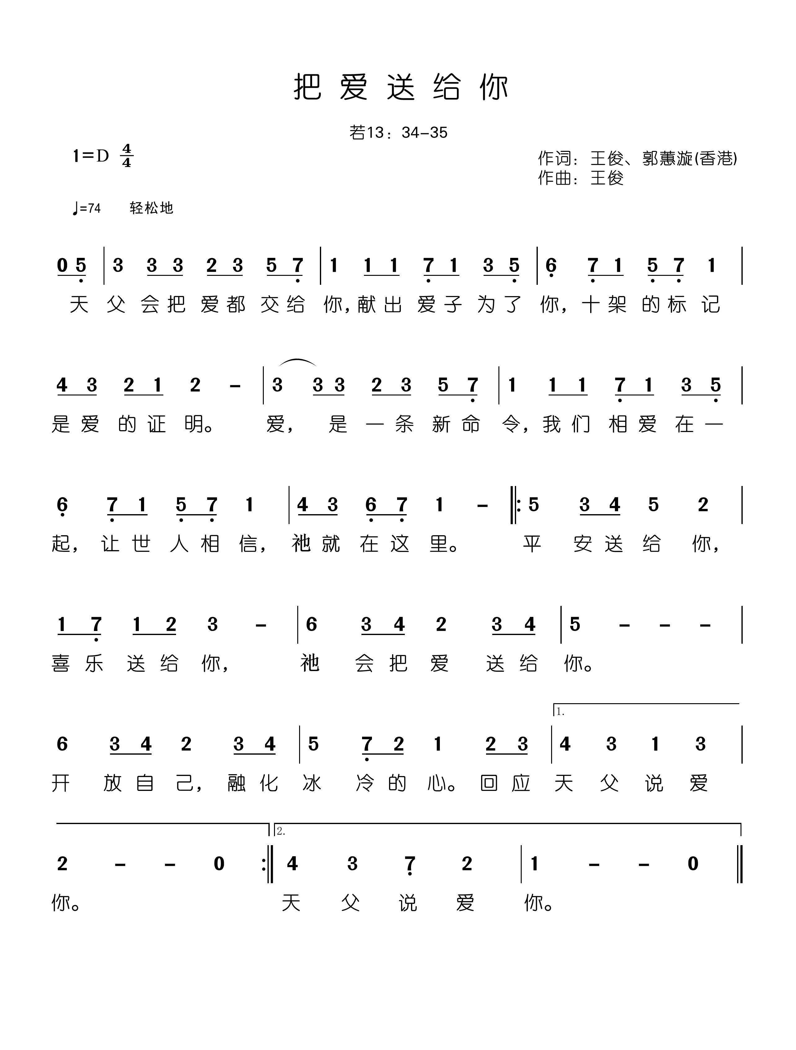 第002期节目《把爱送给你》。歌谱如下: