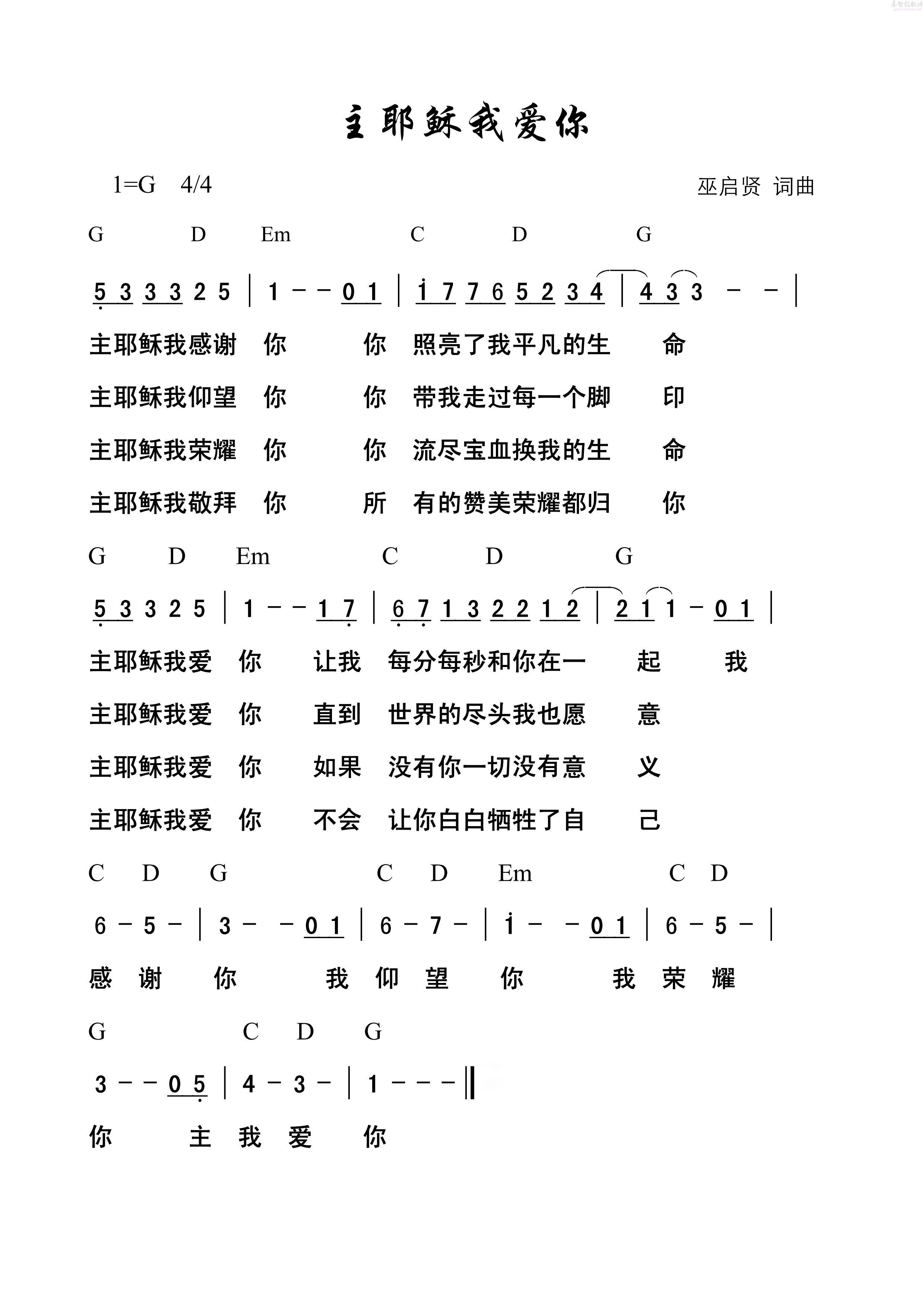 第004期节目《主耶稣我爱你》。歌谱如下:
