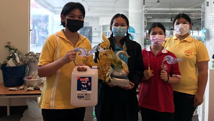 坎拉亚修女在学校餐厅设立了她的工作室,从邻国来的难民在这里将 “垃圾”变成美丽的圣物、坐垫、装饰品、花瓶、围巾、发饰、手镯和插花。参与这个项目的一位难民告诉我们,对一些人来说可能是无用的东西“恰恰可以改造成重新使用的产品”。修女向我们展示了他们如何回收纸张,以及如何使用牛奶盒来制作带有美丽图案的花瓶。通过这份工作,他们已经能够帮助贫困的家庭赚取一些钱,同时继续治愈世界,使其成为人类更美好的家园。