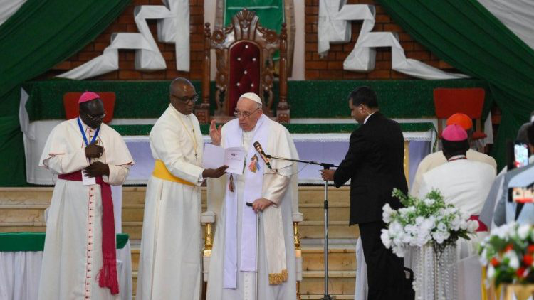 据梵蒂冈新闻网报道,2月4日是教宗方济各在南苏丹进行牧灵访问的第二天。教宗当天的首项活动是在朱巴主教座堂与主教、司铎、执事、度奉献生活者和修生会晤。教宗在讲话中提醒,他们的责任是回应天主的召唤,成为人民“救恩的工具”,不要转面不顾人民的苦难,而要在国家发展的历史中扮演先知性的角色。