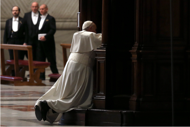 在圣伯多禄大殿,司仪引导教宗进入一间告解厅准备听告解。但此时教宗却朝着另一告解厅走去。教宗率先在一位神父前办了告解。这一历史上标志性的时刻被摄影师定格,也激励全球信友重新发现告解圣事的美好,体验天主慈悲的宽恕。第二年,教宗就发起了“慈悲禧年”。