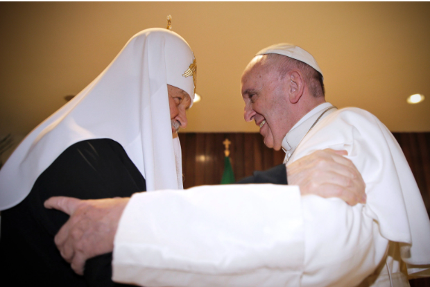 自1054年教会大分裂之后,近1000年来,天主教教会最高领袖第一次与莫斯科东正教宗主教会面。此次在古巴机场举行的历史性会晤,标志着两大教会关系间的升温。在一个巨大的拜占庭风格十字架前,两人拥抱并亲吻对方的脸颊。