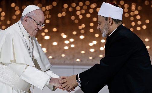 在阿拉伯半岛,教宗方济各和伊斯兰教最高领袖之一阿玆哈尔大伊玛目塔伊布彼此拥抱。在圣方济各亚西西和苏丹王相会800周年纪念日上,两位宗教领袖会面签署了一份文件,倡导和平,以造物主的名义谴责各种形式的暴力。