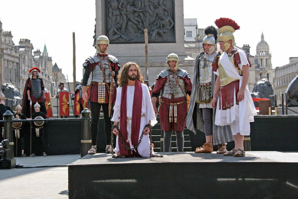 圣周五这一天,英国伦敦的特拉法加广场(Trafalgar Square)会上演约90分钟的“耶稣受难记”(the Passion)。该演出对外开放且免费,所有人都可以通过在线直播或亲自到场观看。