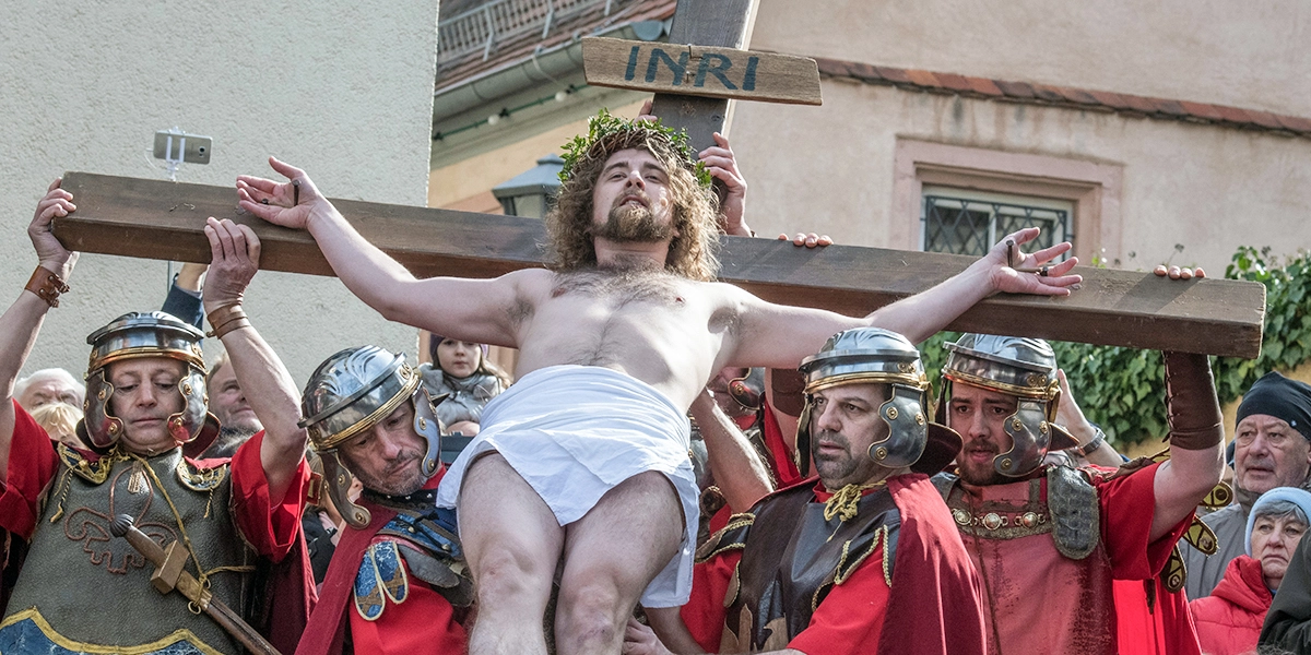 在德国的本斯海姆,居住在那里的意大利人的团体会在耶稣受难日这一天参加一年一度的游行,并重演耶稣受难的经过。该活动生动描述了基督在世生活的最后几天,从被门徒背叛到被钉死在十字架上。在现实里,饰演耶稣的表演者在不受伤害的情况下,真的被“钉”在十字架上。