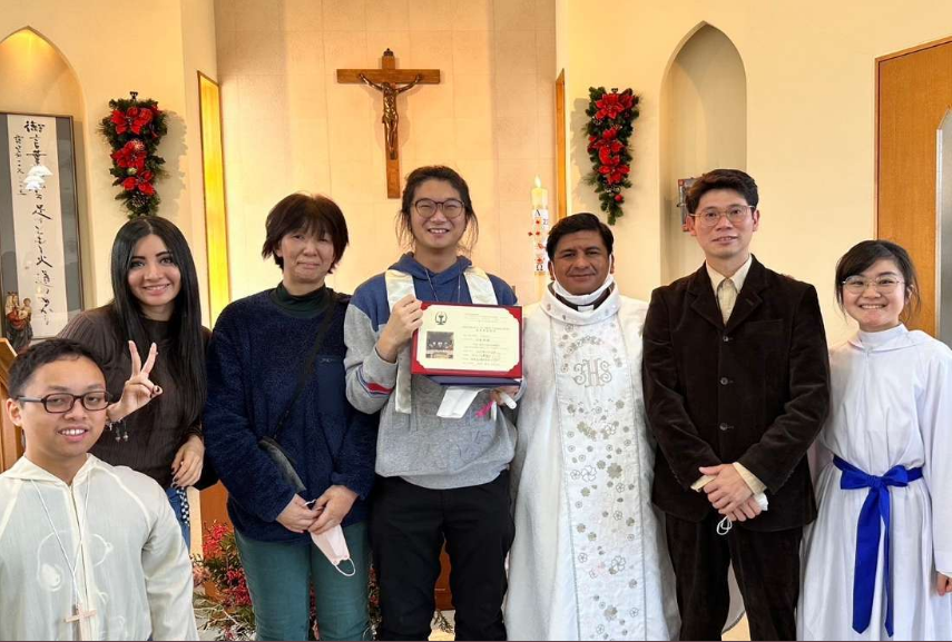 去年12月25日,由纪领受了洗礼,母亲也前来参礼。他表示,自己正为两件事祈祷。一是为母亲和兄弟们也能领受洗礼;一是求天主为自己预备一些可以经常分享圣言的同行者。在信仰路上,天主一步步地引导着小摩由纪走在皈依的道路上。