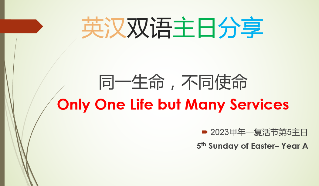 【英汉主日分享】| 同一生命,不同使命(复活期第5主日)