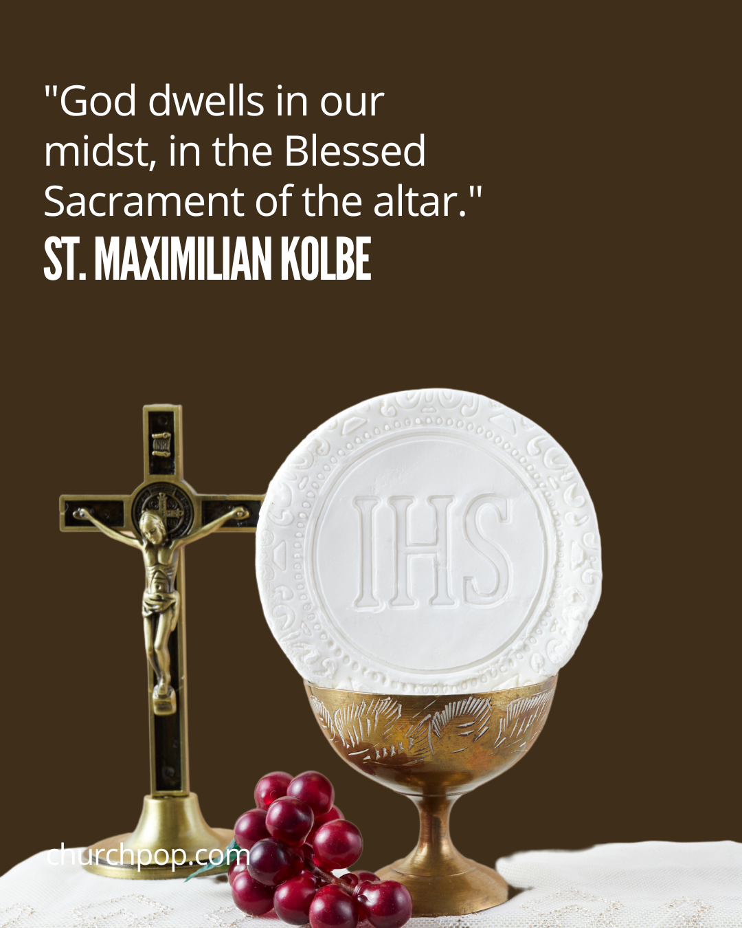 3、二战时期甘愿为他人而死的圣国柏神父曾说:“天主住在我们中间,就在祭台上的圣体内。” “如果天使会嫉妒人类,那只有一个原因,就是因为 圣体圣事。”