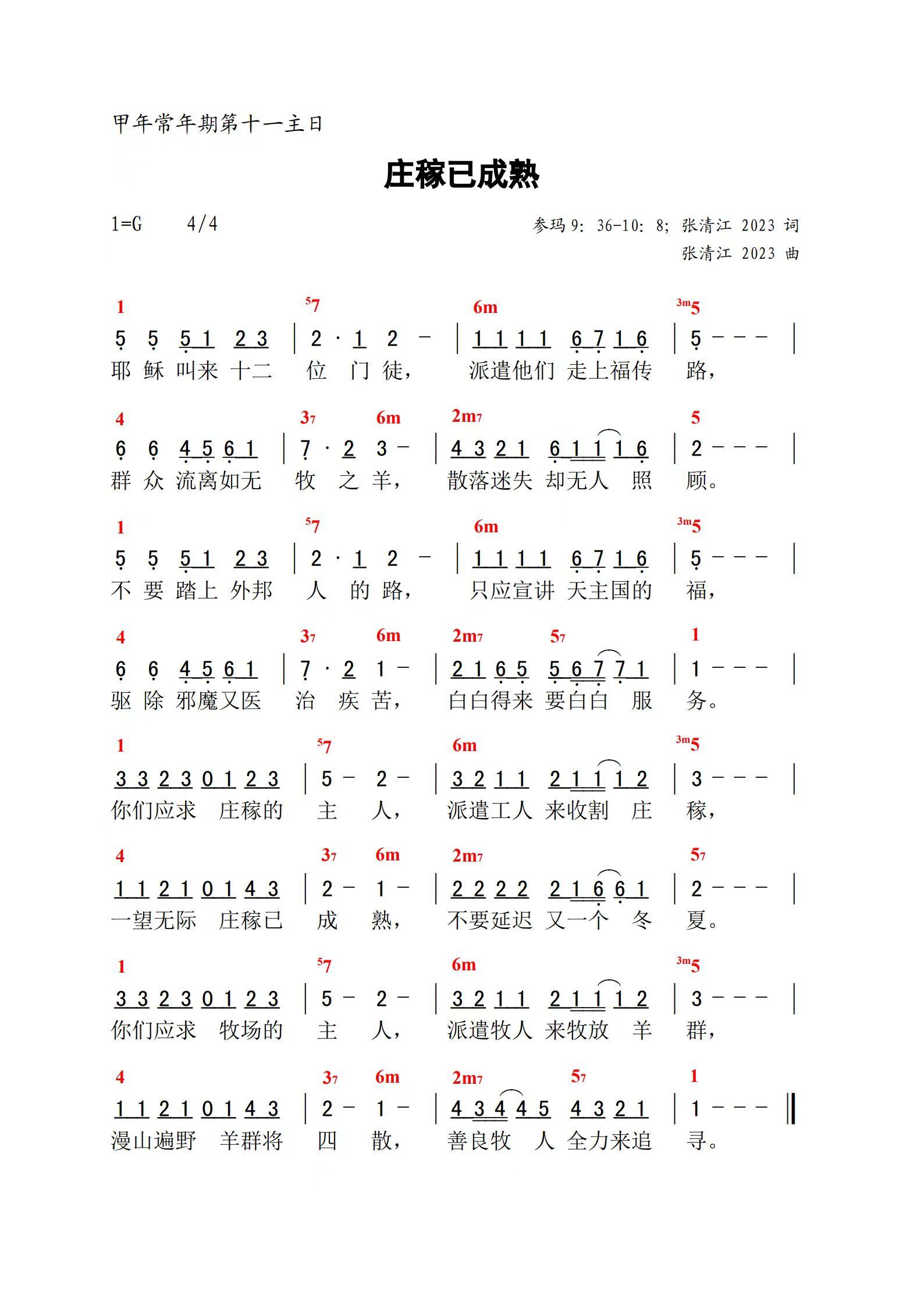 【主日赞歌】| 庄稼已成熟(甲年常年期第十一主日)