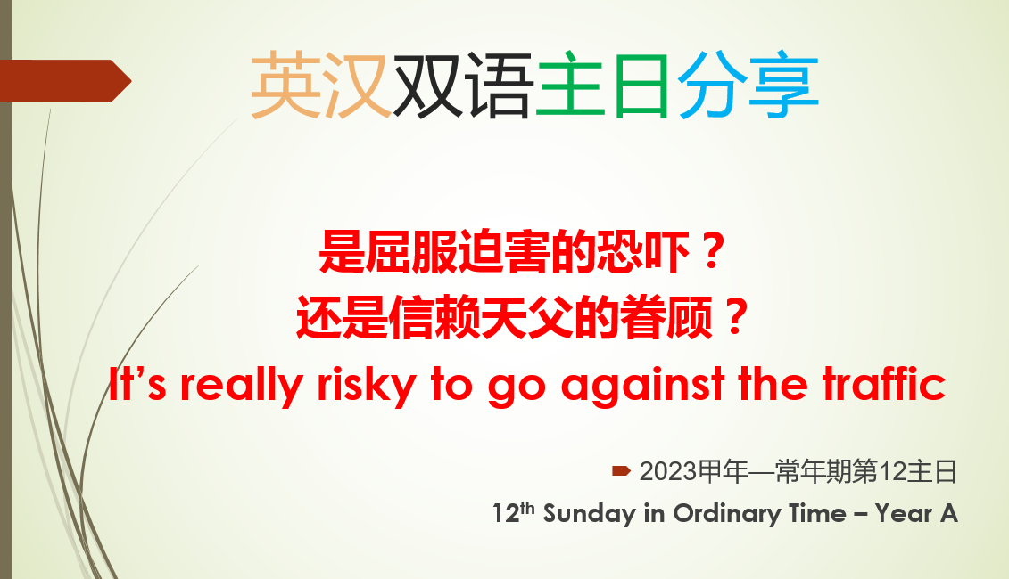 【英汉主日分享】| It’s really risky to go against the traffic(12th Sunday in Ordinary Time)