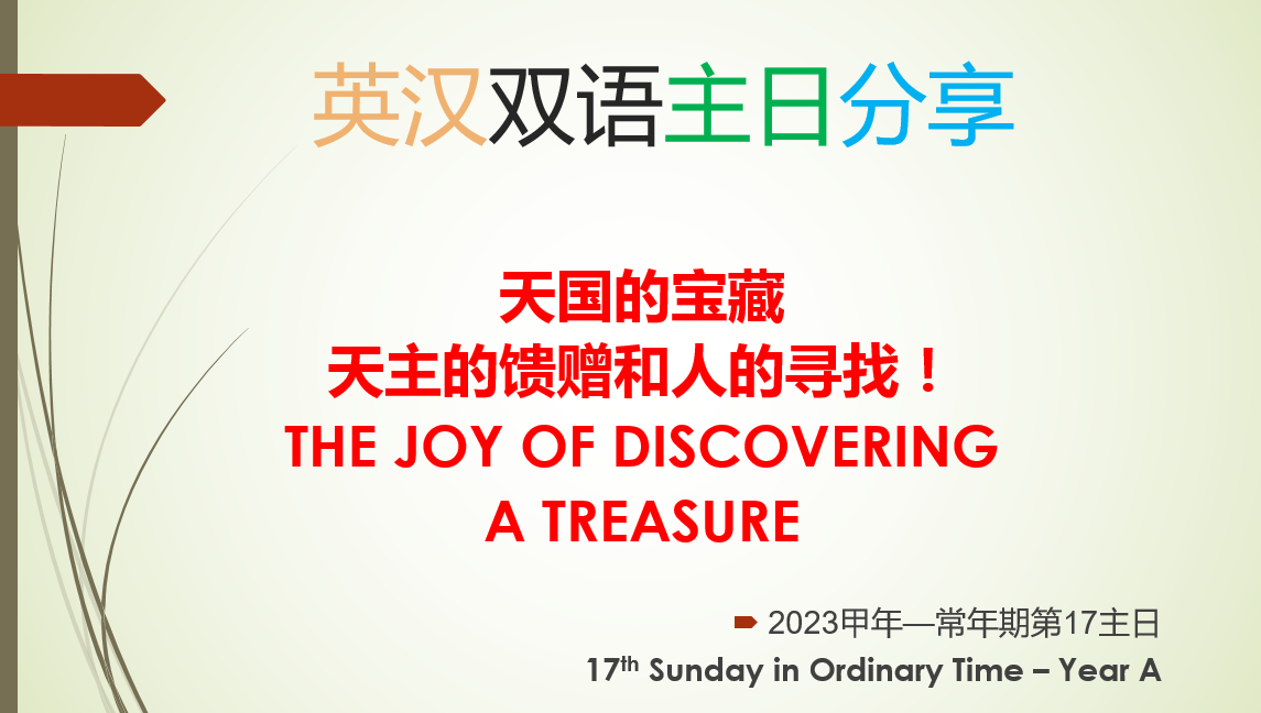 【英汉主日分享】| THE JOY OF DISCOVERING A TREASURE(17th Sunday in Ordinary Time)