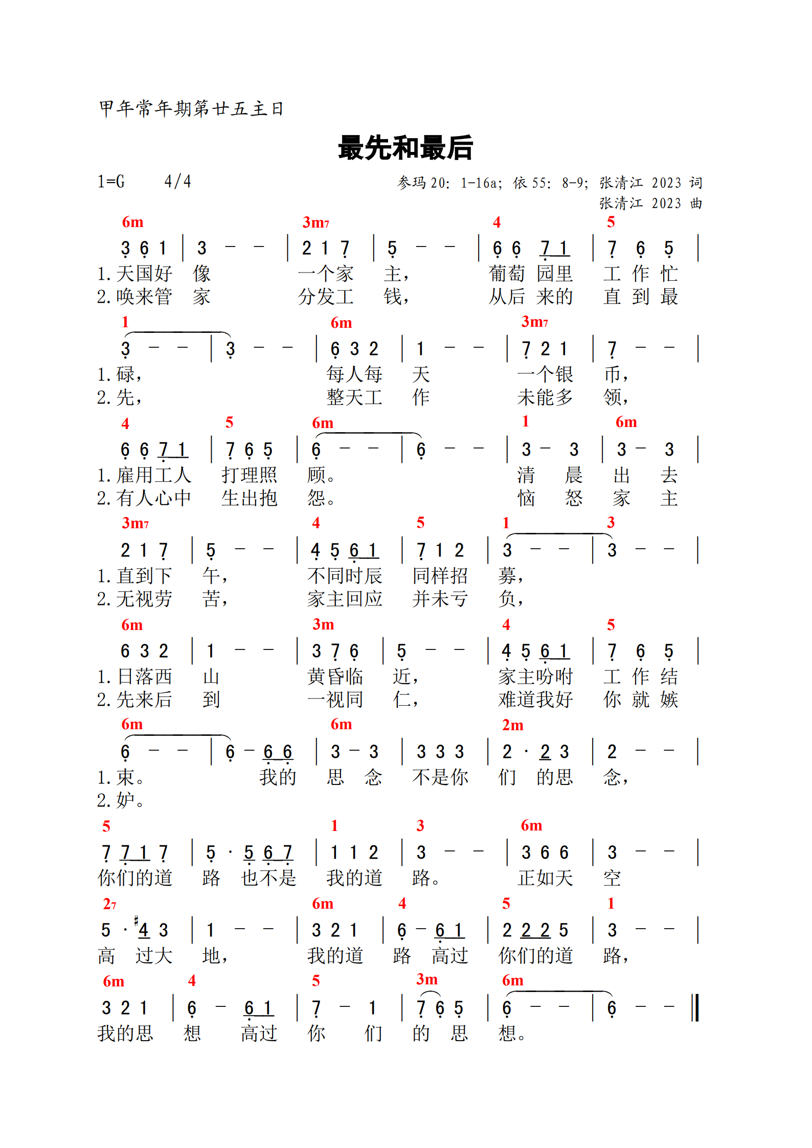 【主日赞歌】| 最先和最后——甲年常年期第25主日