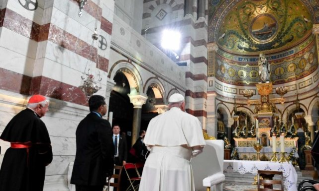 教宗在法国马赛的第一项活动,是在守护之母大殿进行。他此行为出席地中海地区会议的闭幕活动。教宗邀请当地的神父们带着同情的目光来撒和平的种子。