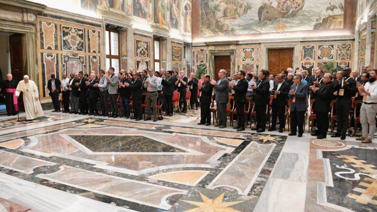 最后,教宗鼓励在场的所有会士:“亲爱的弟兄们,请继续满怀激情地工作。……我发自内心地降福你们。我请你们为我祈祷,因为我需要你们的祈祷,这项工作并不那么容易!谢谢你们!”
