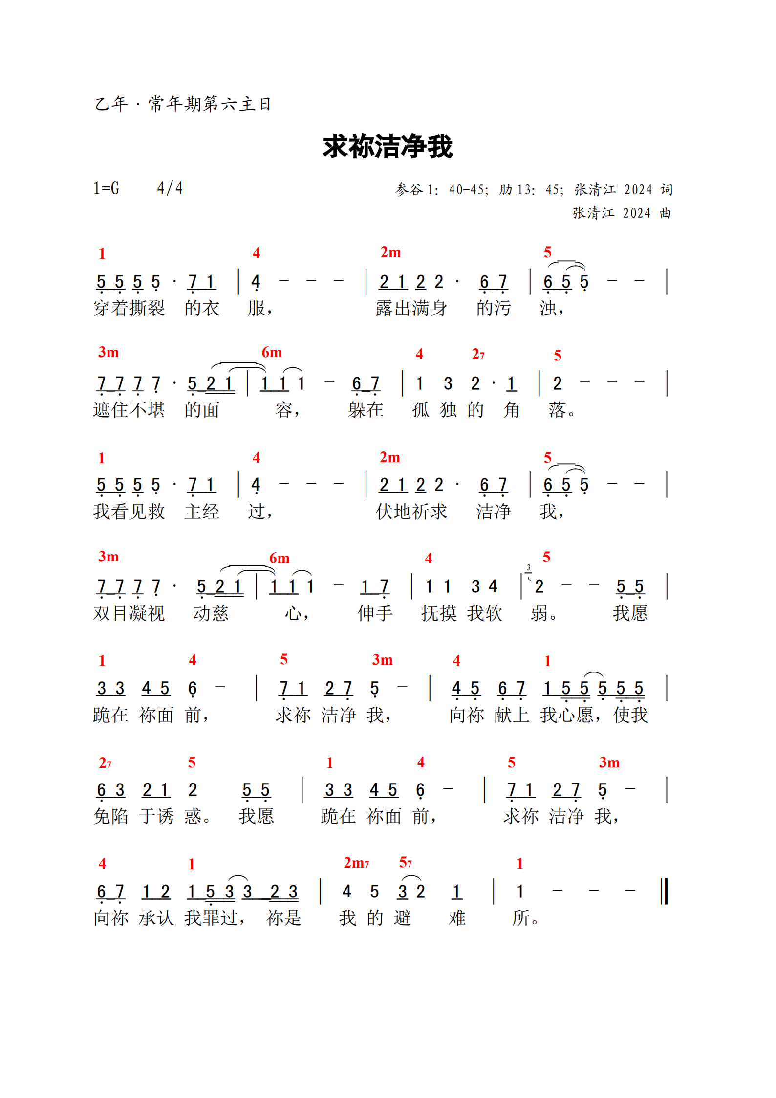 【主日赞歌】| 求你洁净我——乙年常年期第6主日