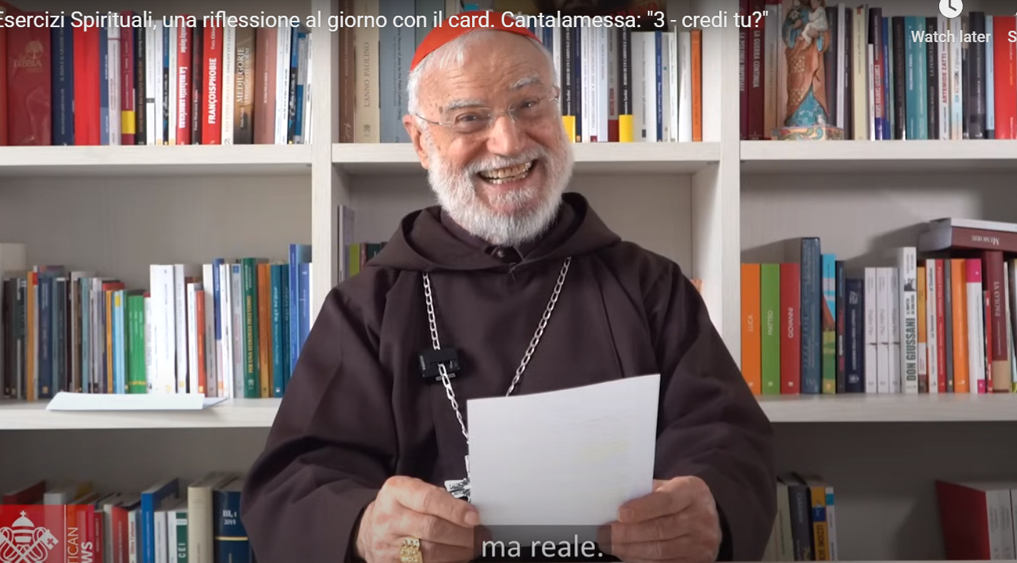 教宗府讲道神师在2月21日发表的视频中说:“今天要‘咀嚼’的话语是耶稣在拉匝禄的墓前对亡者姐妹提出的问题:‘你信吗?’(若11:26)请暂时放下你从要理学到和背下来的一切,以及在《信经》中反复诵念的内容。你要进入一个只有你和天主的私密空间,问自己:我信吗?我可曾真心相信,自己相信,而不仅是‘通过一个中保’,也或许是通过普世教会来相信?圣保禄写道:‘心里相信,口里承认。’(罗10:10)我的信仰宣认是否发自内心深处?信仰打开新视野;唯有它能给人类最重要的那些问题一个严肃的答案:‘我是谁?我从哪里来?要往哪里去?’电子时代为我们提供了一个前所未有的信仰图像:网络连线。打开谷歌网页,你就连上网了!整个虚拟世界尽在你的眼前。藉着信仰取得的效果多少有些类似。没有线路、没有费用。一个简短的祈祷、简单的心灵律动、对你面前小桌子上的基督像的注视,你就连上线了!连上的不是虚拟、而是真实的世界。那是唯一真实的世界,因为它是永恒的,是天主的世界!试试看,你就会知道我说的是否属实!”