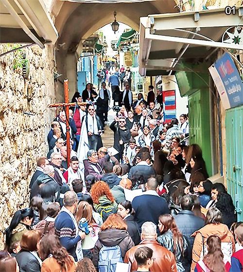 以色列与巴勒斯坦之间冲突不断,逾1000名来自圣地的教会学校的学生于2月23日在耶路撒冷旧城区拜苦路,为圣地的和平祈祷。