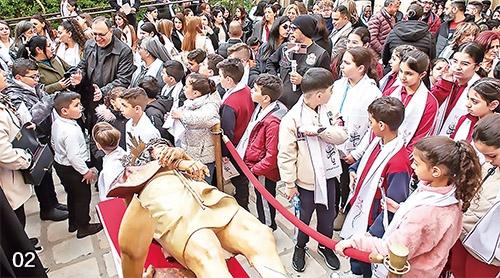 师生在和平而虔诚的气氛中出发,前往各个苦路站祈祷,每一站均由两名孩子释放两只白鸽。苦路的最后一站为救世主堂。“我们重踏耶稣2000年前背负十字架前往加尔瓦略山时所踏过的石头,旨在祈求战争结束,及修和与和平之恩。”守护圣地的方济会会士带领苦路善工祈祷结束时宣告,“耶稣为我们献出生命时,经历了最重大的苦难,他承受了人类所有的苦难,而我们今天所承受的苦难,也是加沙、巴勒斯坦、以色列及其他国家的孩子的苦难。”