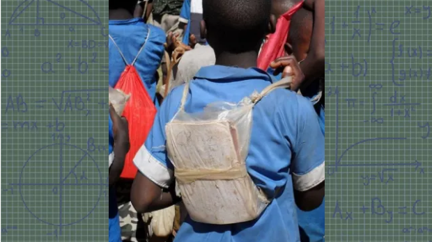 因为没有书包来放学习需要的课本,一名来自乌干达的学生的做法很有创意,却令人泪目。