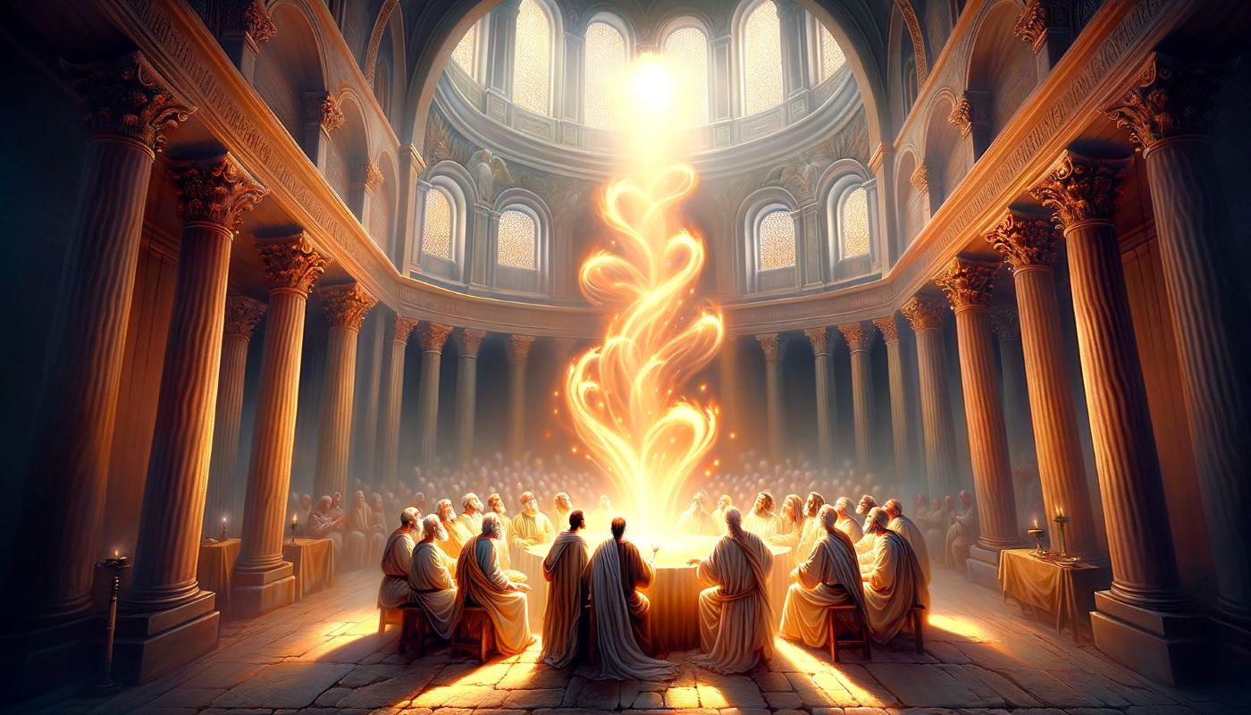 弟兄姐妹们,今天我们庆祝五旬节,同时也庆祝慈母圣教会的生日。什么是教会?为我们信仰耶稣基督的人来说,当我们因祂的名字聚集在一起,我们就形成了一个教会。在2000多年前的今天,宗徒们和门徒们因着耶稣的许诺而聚集在一起,等候圣神降临。而圣神的降临,也确实改变、更新了他们的生活,带来了教会的诞生。今天读经一当中对此的描述很美丽,也很形象。“从天上来了一阵响声,好像暴风刮来,充满了他们所在的那座房屋。有火一般的舌头出现,分别停留在他们每一个人的头上,众人都充满了圣神,照圣神赐给他们的能力,说起别种语言来。”“众人都充满了圣神,照圣神赐给他们的能力,说起别种语言来。”圣神来临的时候,有风的声音,也有火舌的形象。这不仅是一种昭示,更是天主显现的象征。因为在旧约里面,风和火本就是天主显现的象征。但是在新约内,风和火舌也表示圣神的更新、振作、炼净和光照。火舌分别停留在他们每一个人的头上。这更是表示赐与门徒向万民宣讲福音的能力和使命。所以,从那一刻起,圣教会因圣神的降临而诞生,而充满圣神的门徒们,借着圣神的能力大胆地宣讲,使新生的教会成长。