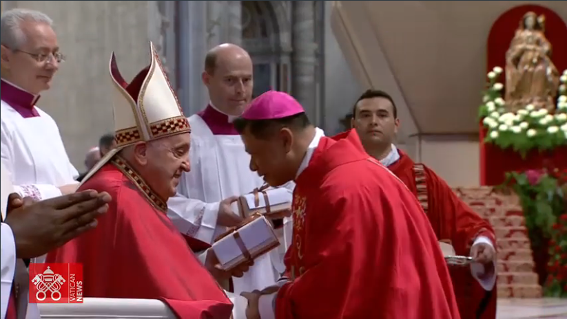 与教宗共祭的有36位枢机、36位主教和400位司铎。参礼的还有过去一年获任命的42位教省总主教,教宗为他们授予象征与罗马教会共融的羊毛肩带。教宗说:“在与伯多禄共融并以基督为榜样的基础上,这些教省总主教蒙召成为热心的牧人,打开福音的大门,并通过他们的牧职,为建设一个敞开大门的教会和社会作出贡献。”开放的概念贯穿整个弥撒讲道,两位圣人在与主相遇时,经历了一次真正的逾越体验:他们获得释放,新生命的大门在他们面前敞开。