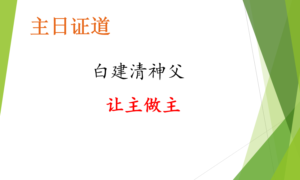 让天主做主,我们基督徒的生命才会轻松,我们的教会团体才会发展,我们的世界才会走向正道,回归天主。让天主做主,也提醒我们要让他人做他人,要让自己做自己。