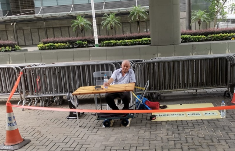 据亚洲新闻网报道,7月15日,宗座外方传教会传教士甘浩望神父在位于金钟中区的香港政府大楼前绝食抗议。他呼吁:“人人享有自由,请不要忘记自2019年以来因亲民主运动而被捕入狱的活动人士,其中包括众多年轻人。”