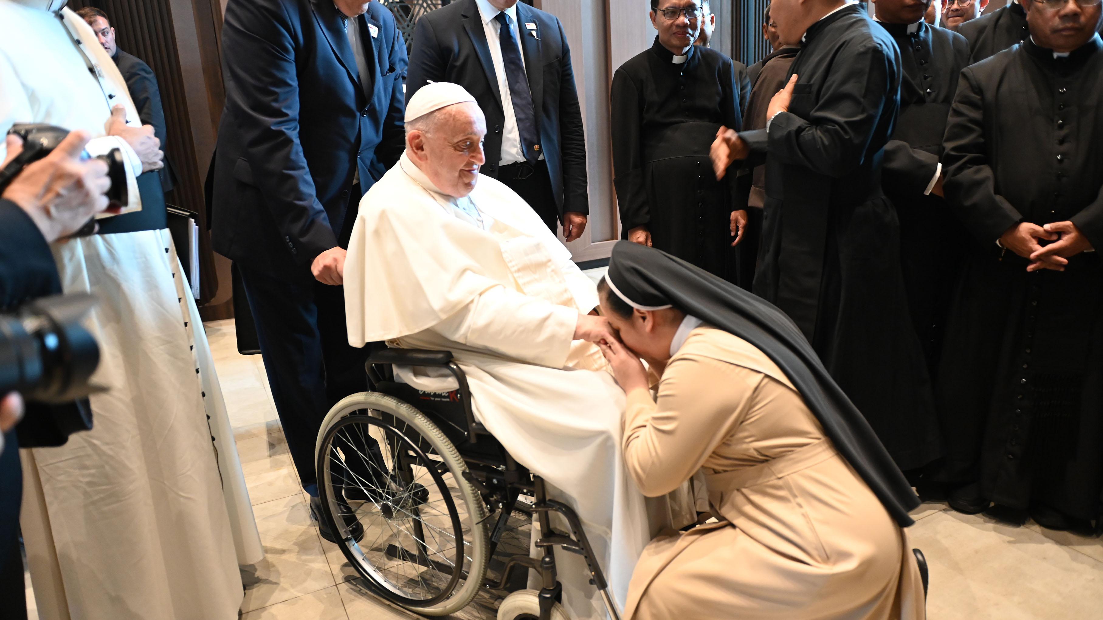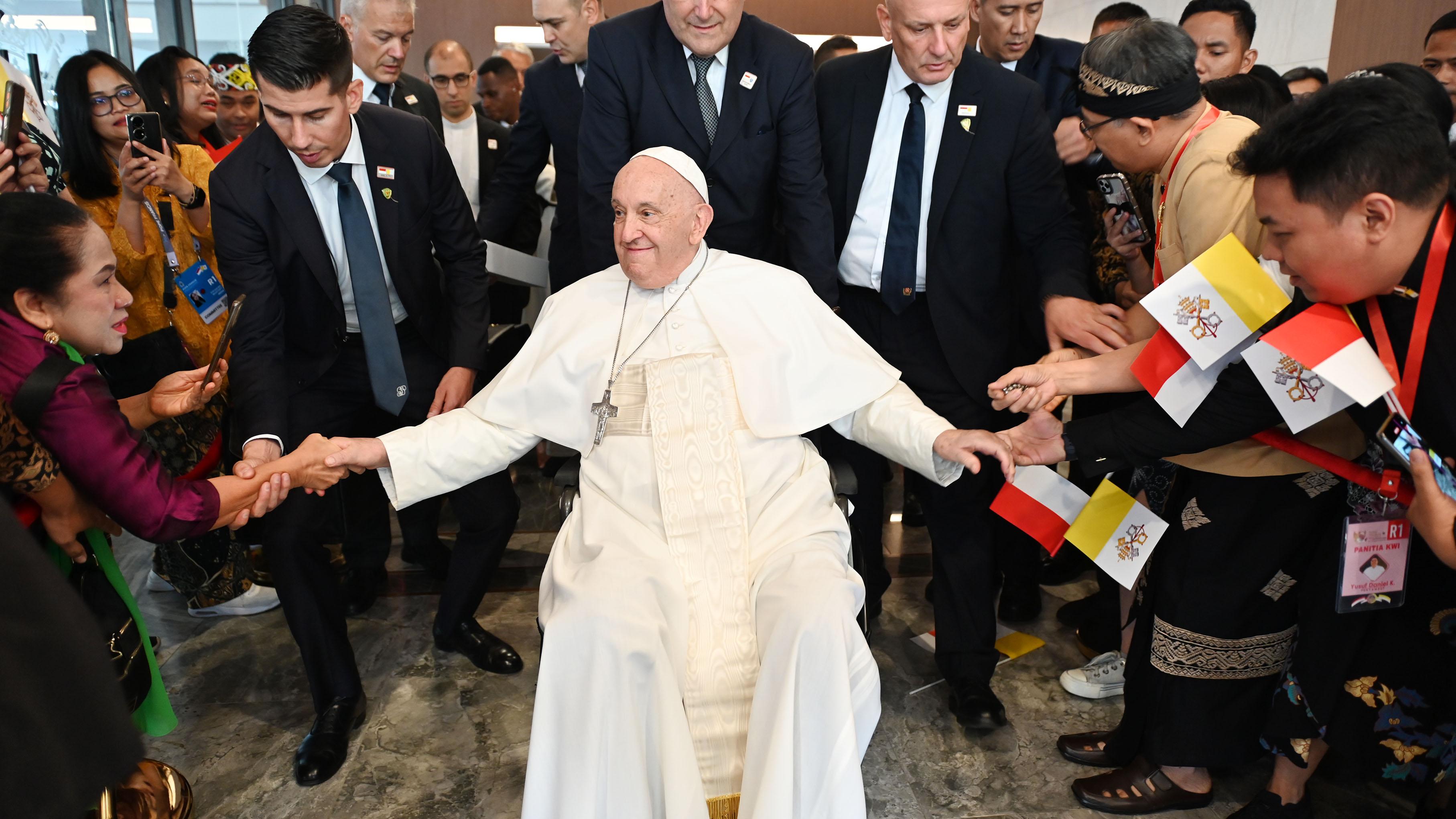 教宗在讲话中,向所有在场的人和那些与他分享自己见证的人表示感谢。他赞扬印度尼西亚主教们选择与病患、残疾人和贫困者一起庆祝全国主教团成立100周年,并强调这些人的重要性,称之为教会中“明亮的小星星”。