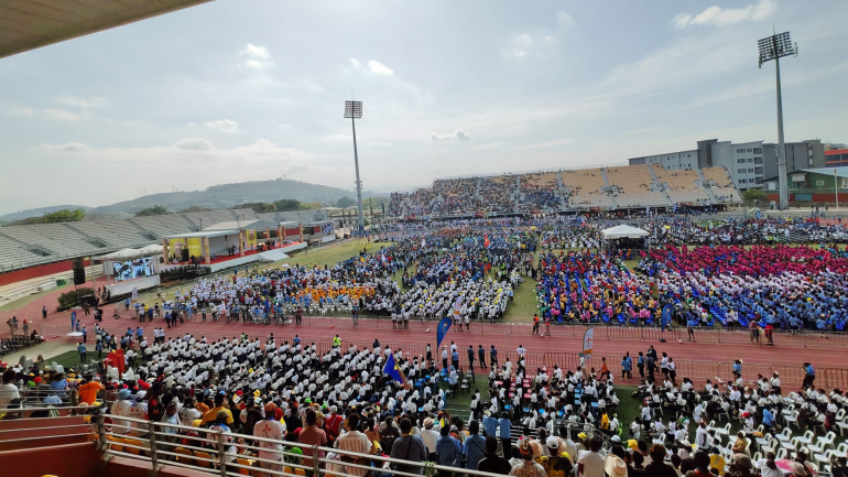 在放下预先准备好的讲稿后,教宗方济各微笑着邀请青年们在分裂与和睦之间做出选择,并提到梅瑟后裔在建造巴贝耳塔时的行为。青年们齐声选择了“和睦”。然后教宗提醒他们:“上主创造我们,是为了与他人保持良好的关系。”在这个拥有800多种语言的国家,教宗告诉青年们,他们需要“一种语言来帮助大家保持团结。是什么语言呢?”有些人回答“爱”。教宗进一步澄清:“你们的共同语言是心灵的语言,爱的语言、关怀与服务的语言”,并希望“你们都能讲这种语言,成为爱的‘母语人士’!”