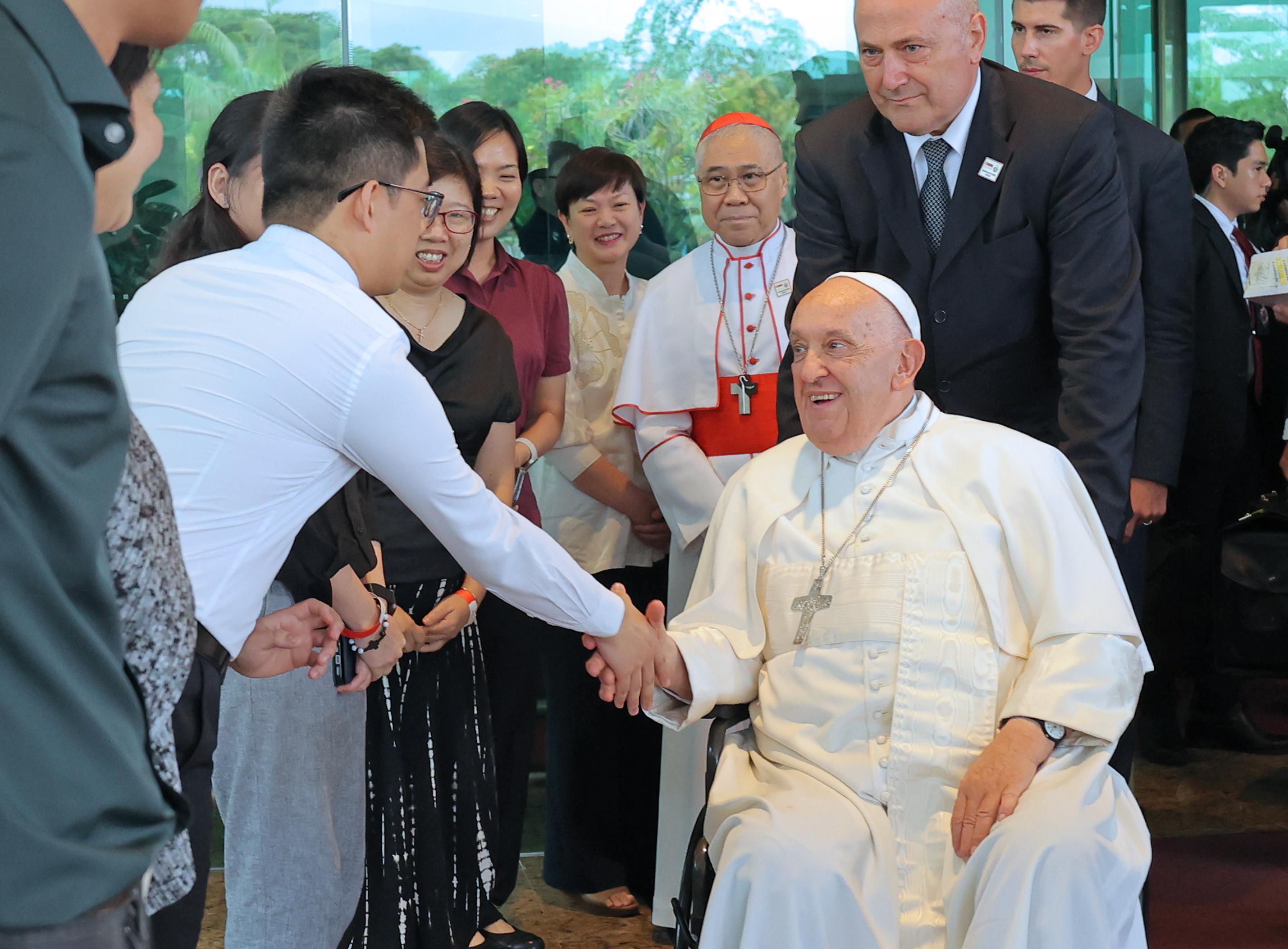 教宗抵达新加坡后,当天唯一的活动是在“圣方济各·沙勿略”退省中心与在该国的耶稣会士们进行私人会晤。这座建筑物原先是“圣方济各·沙勿略”修道院,从1997年起用于灵修避静活动。
