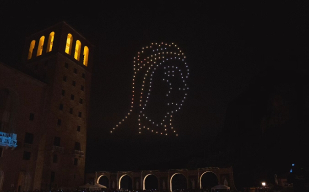 约200架无人机照亮了天空和蒙特塞拉特山。它们共同代表着象征性的人物,概括了修道院的千年历史,并以“黑色圣母”(Moreneta)的头像达到高潮,这是信友们对修道院圣母玛利亚雕像的称呼。