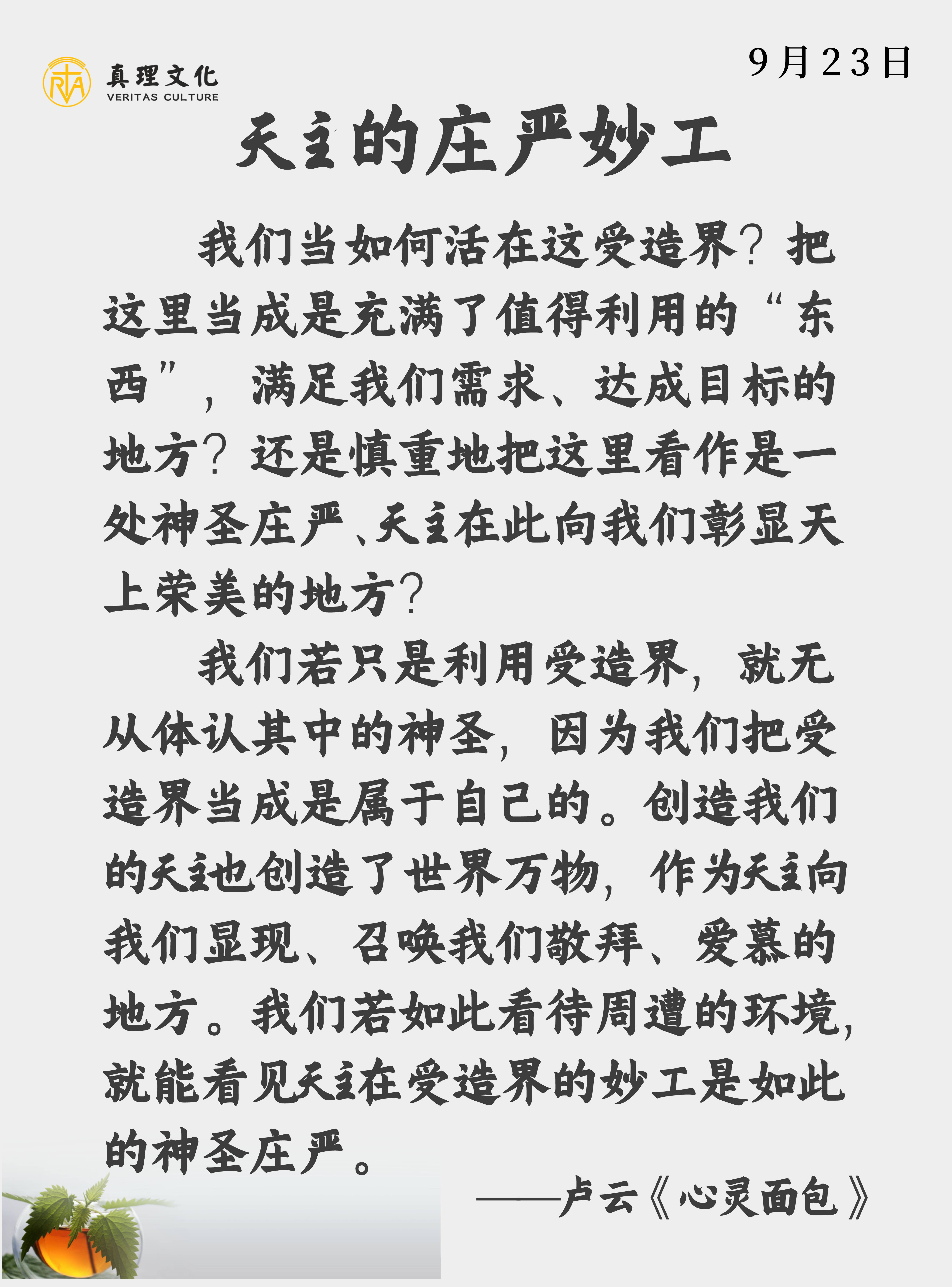 真正聆听天主话语的基督徒,会致力成为世界的光,不会用器皿遮盖住散发的光明,而是承行天主的话,在生活中做个行善和正直的义人(见今天的读经一和圣咏),把基督,把光明带给别人。
