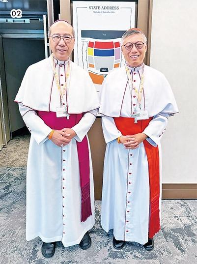 (周守仁枢机与夏志诚辅理主教于9 月12日参与教宗在新加坡主持的演讲活动)