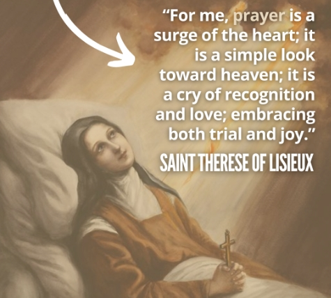 “为我来说,祈祷是心灵的跳跃;是投向天乡单纯的凝视,是在困苦--如同在喜悦中的一声感恩和爱的呼唤。”