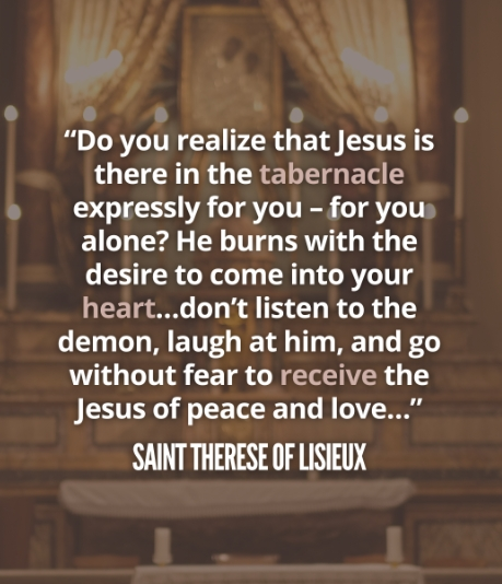 8、你是否意识到耶稣是专门为你而存在圣龛中——只为你而存在……他渴望进入你的内心……不要听从魔鬼,嘲笑牠,毫无畏惧地去接受和平与爱的耶稣……