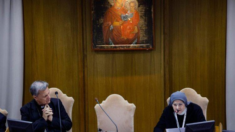 在世界主教会议会前避静的第二天,安杰利尼修女在晨祷时间为与会者带领省思,指出静默的价值在于赞美上主。