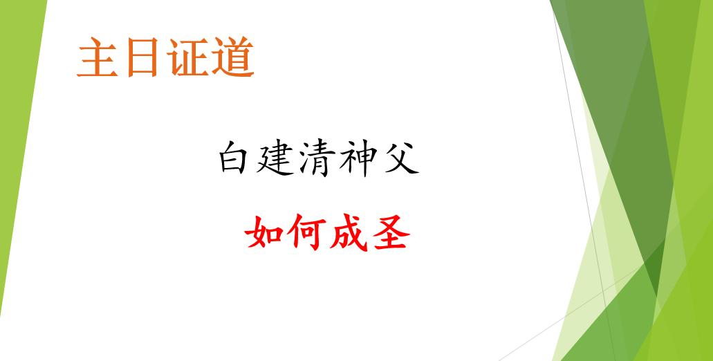 对于我们基督徒而言,通过圣洗圣事,我们已经分享了主耶稣的生命了,已经开始了圣人的生命。然而,我们依然有一个“圣化”的过程,就是圣化自己,圣化他人的生命历程。圣化自己,就是跟随主耶稣选择承行天父的旨意;圣化他人,就是将主耶稣和祂的福音带给身边的兄弟姊妹们。
