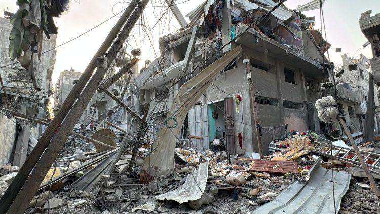 据梵蒂冈新闻网报道“无论白天还是黑夜,直升机和炸弹爆炸的声音一直没有停止过”。加沙圣家堂本堂神父罗马内利向《罗马观察报》如此表示。“声响来自我们堂区西北地区的贾巴利和希塔附近。希塔以前还住著几个基督徒家庭,现在那里有强制执行的疏散令。到目前为止,留下来的少数基督徒躲到两个堂区,也就是我们的堂区和东正教堂区”。