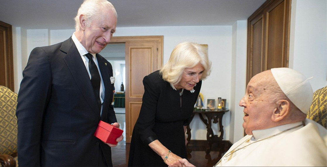 教宗方济各周三在教宗私人住所与英国国王查尔斯和王后卡米拉举行了简短会晤,双方政要互相祝福。