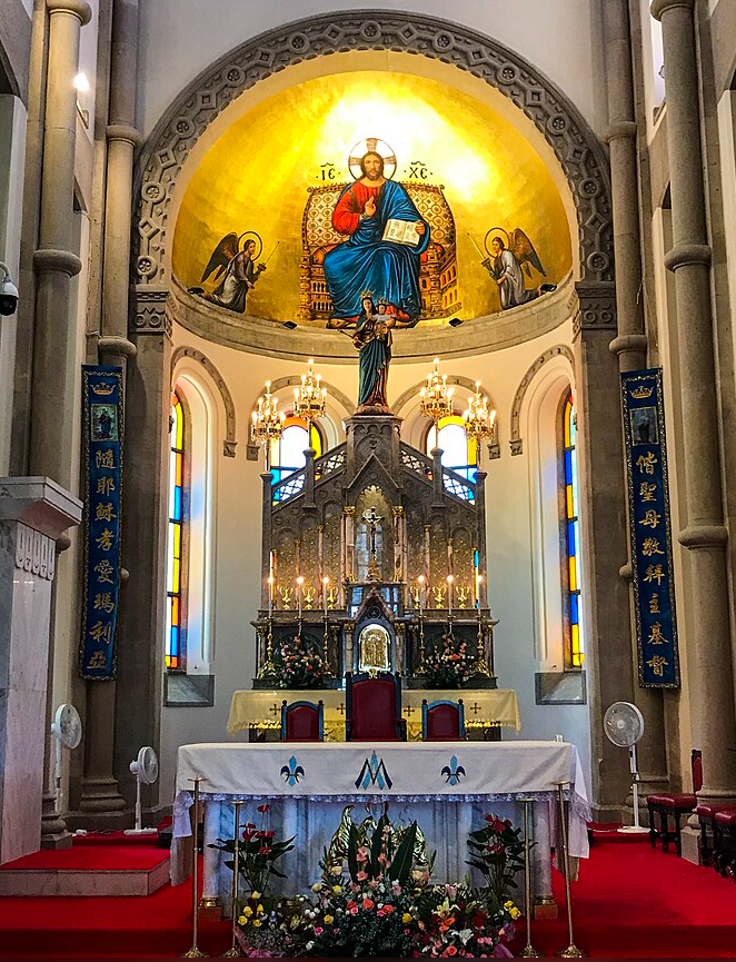 祭台是一个圣堂当中最尊贵的物品,是奉献弥撒圣祭的地方。在古代,祭台是柱子支撑的台子的样子,然而大部分情况,祭台的外形有着坟墓的样子,因为在初期教会,信友们常在致命圣人的坟墓上举行弥撒圣祭。这意味着,弥撒圣祭是纪念基督的圣死。后来,圣教会有在祭台下放置圣人遗骸的习惯。那放圣人遗骨或者圣人遗体的地方,叫做圣墓。如今,许多祭台的中央会有一个洞,而上面覆盖的石头,称为“圣石”。此类祭台的中央藏有圣人的遗骸。覆盖在上面的圣石是经过极隆重祝圣的,也是司铎在举祭时九折布的所在,表明圣祭正是在这石头上举行的。