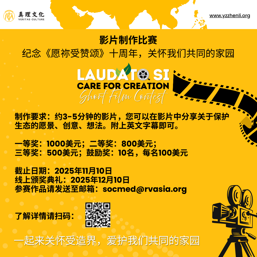 “《愿祢受赞颂》:关爱创造物电影制作大赛”邀请亚洲各地的电影制作人、学生、社会传播部和环保倡导者制作短小、鼓舞人心的电影,生动地传达教宗方济各通谕《愿祢受赞颂》中关于关爱我们共同家园的紧急呼吁。